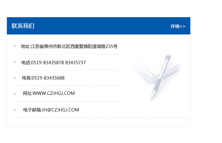 傳真:0519-83435688    郵編:213135    網(wǎng)址:WWW.czjhgj_com.bjdvalve.com    電子郵箱:JH@czjhgj_com.bjdvalve.com